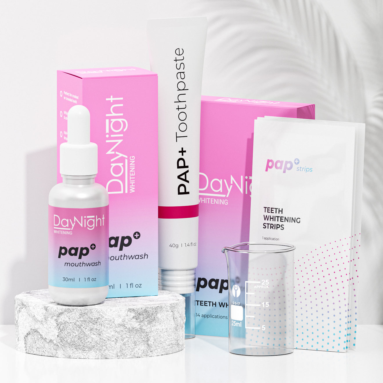 Představujeme vám domácí bělící set, který obsahuje sonický kartáček s LED světlem, denní a noční pastu a dvě náhradní hlavice. Denní pasta s obsahem 100% přírodního kokosového oleje zuby nejen ošetřuje, ale v kombinaci s naším sonickým LED kartáčkem minimalizuje množství bakterií v ústech.